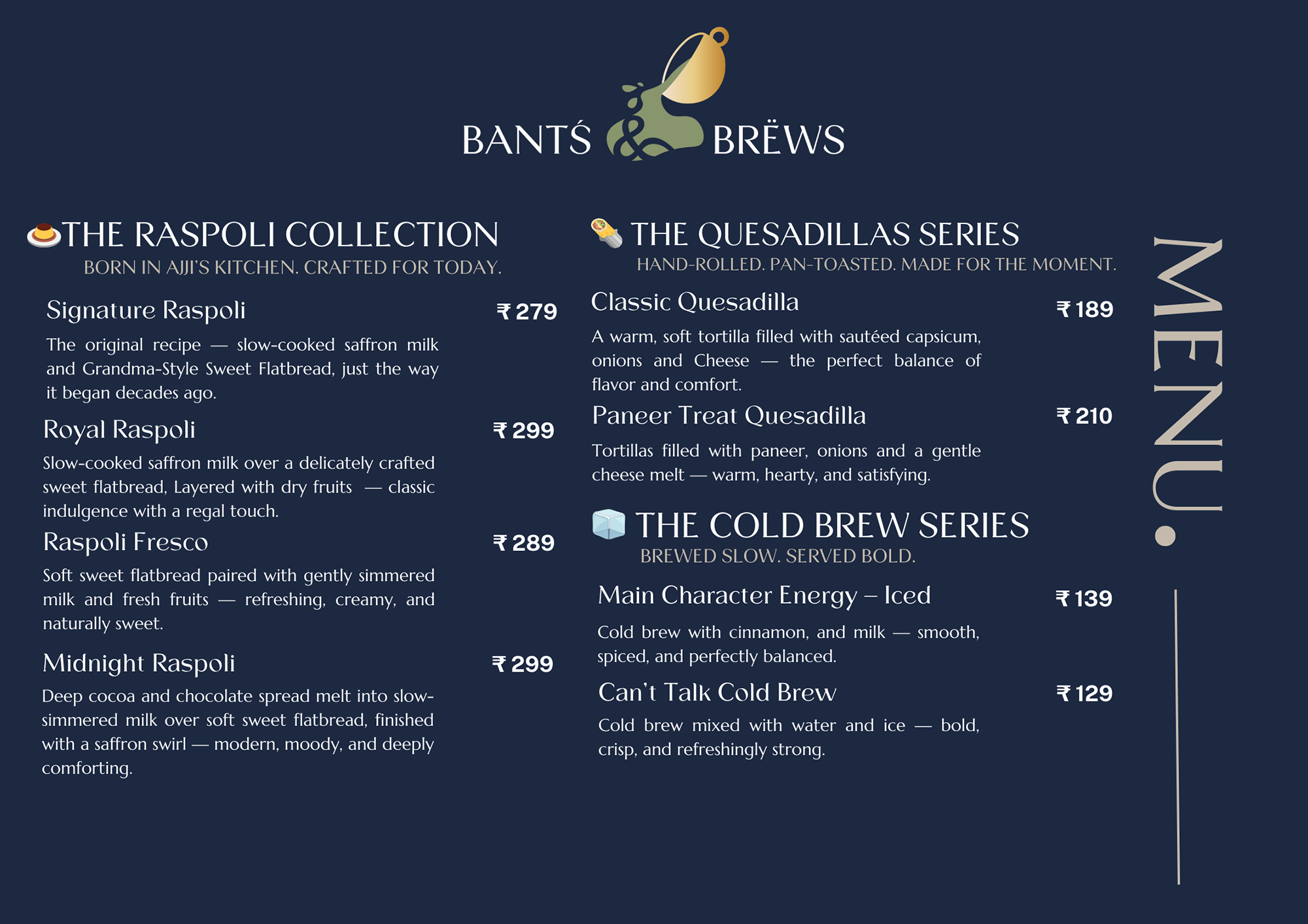 Bants and Brews began with one special memory — a dessert our founder’s grandma made with the kind of love you can still taste years later. That nostalgic feeling became the spark behind Raspoli, our signature creation and the heart of our story.